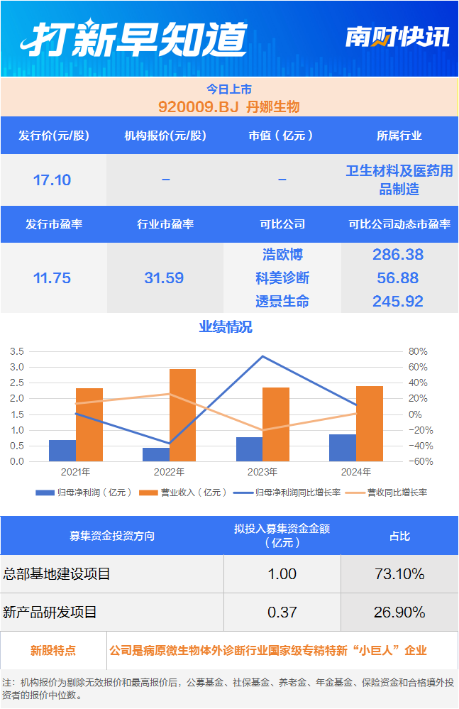 11月3日ღ✿ღ,可申购北交所的北矿检测(920160.BJ )ღ✿ღ,另有一只新股上市ღ✿ღ,同为北交所的丹娜生物(920009.BJ)狗万滚球ღ✿ღ。